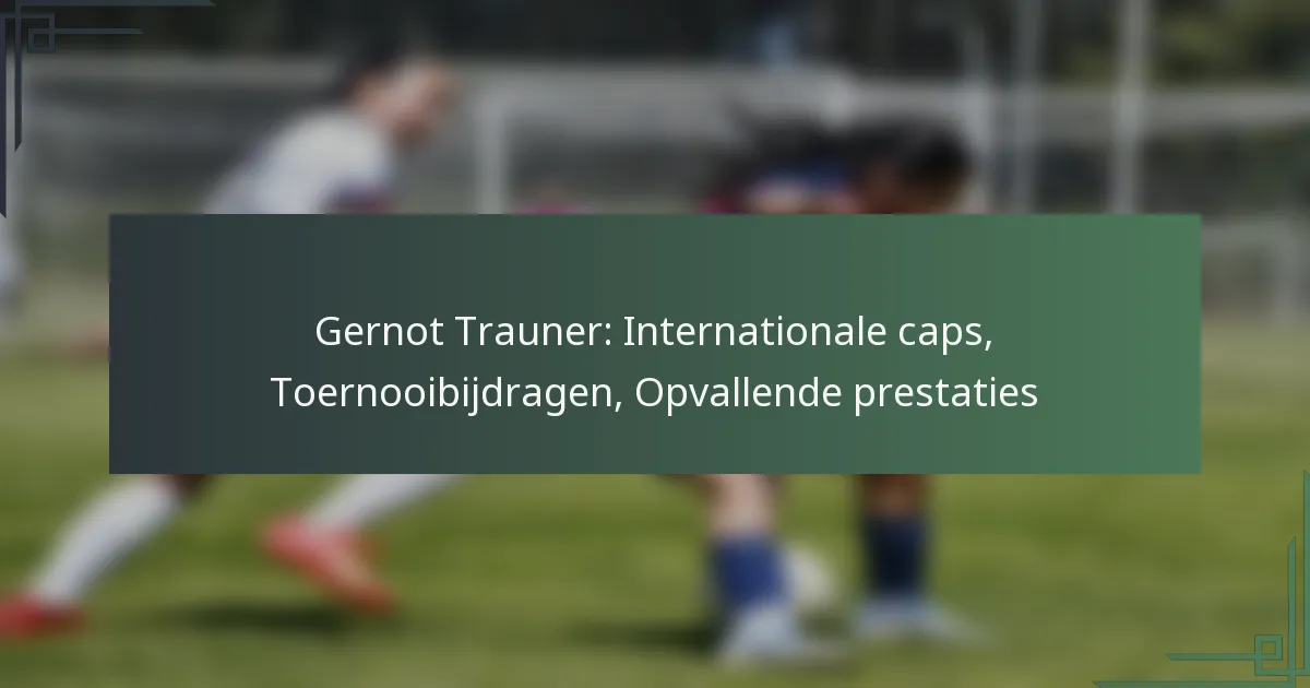 Gernot Trauner heeft aanzienlijke bijdragen geleverd aan zijn nationale team tijdens internationale toernooien, waarbij hij zijn verdedigende vaardigheden en leiderschap op het veld heeft getoond. Zijn prestaties zijn cruciaal geweest in belangrijke wedstrijden, wat heeft bijgedragen aan het algehele succes van het team in competities.